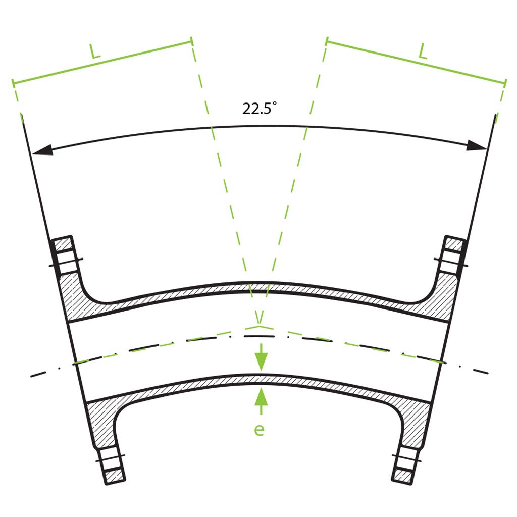 جهت اتصال دو لوله با انتهای فلنجدار که نسبت به یکدیگر زاویه 22.5° دارند، استفادهمیشود. استاندارد فلنج بر اساس DIN EN 1092 – 2. استاندارد ابعاد بر اساس ISO 2531. استاندارد ریختهگری بر اساس DIN EN 1693.